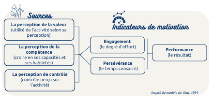 L’engagement scolaire repose sur plusieurs facteurs qui influencent la motivation des élèves. Comprendre ce qui pousse un ou une élève à s’impliquer activement dans ses apprentissages permet d’adapter les approches pédagogiques pour favoriser sa réussite. Dans cette perspective, Rolland Viau (1994) propose une dynamique motivationnelle fondée sur trois leviers essentiels. D’abord, la perception de la valeur de l’activité reflète l’intérêt et l’utilité que l’élève attribue à ce qu’il apprend. Ensuite, la perception de compétence est la confiance de l’élève en ses capacités à réussir face aux défis. Enfin, la perception de contrôle, qui désigne l’impression d’avoir un pouvoir sur son apprentissage. Ainsi, en plaçant l’élève au cœur de son apprentissage, cela favorise non seulement sa motivation, mais aussi son engagement, sa persévérance et sa performance (Viau, 1994 ; Chekour et al., 2015 ; Khelil et Zegrari, 2023). Ainsi, cela favorise la motivation intrinsèque. Grâce à elle, l’élève apprend par plaisir et pour lui-même, renforçant ainsi son autodétermination (Deci et Ryan, 1985 ; Fréchette-Simard et al., 2019 ; Khelil et Zegrari, 2023).