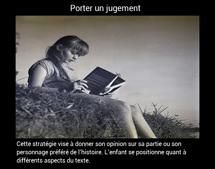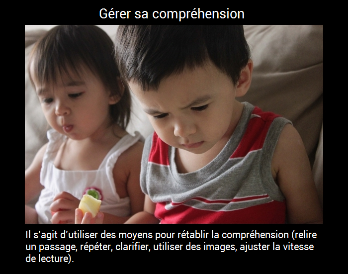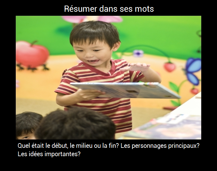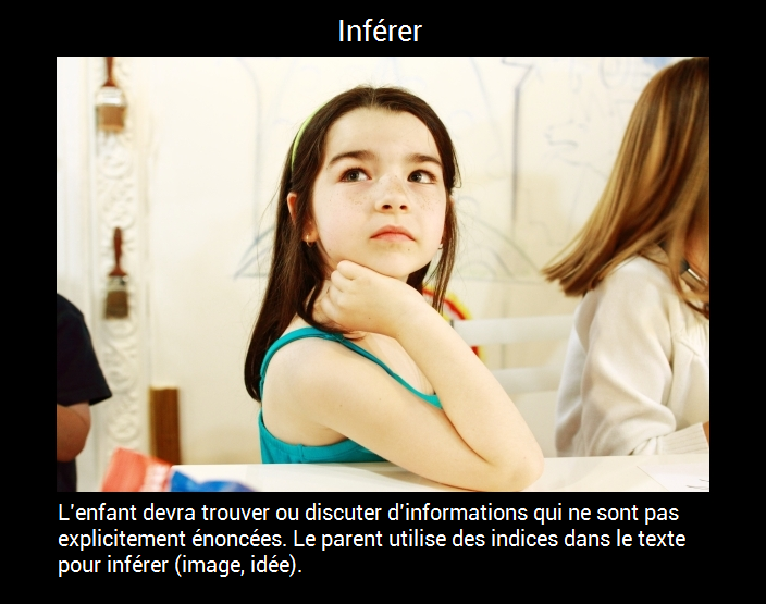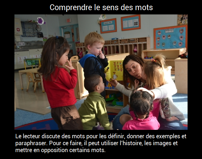 Un « bon lecteur » est quelqu’un qui comprend bien le texte. Il est actif lors de sa lecture et utilise un ensemble de stratégies pour accéder au sens. Ce même lecteur doit donc mettre en place certains processus de compréhension. Un parent peut solliciter des processus de compréhension sans pour autant toujours en avoir conscience. Par exemple, le parent qui fait la lecture à son enfant peut lui demander de faire des liens avec ses connaissances, résumer une partie de l’histoire dans ses mots et poser une question parce qu’il ne comprend pas un passage. L’enfant est actif dans la gestion de sa compréhension même lorsqu’on lui lit une histoire. Mais comment ces processus s’apprennent-ils? Comment le parent sollicite-t-il les stratégies de compréhension de son enfant?