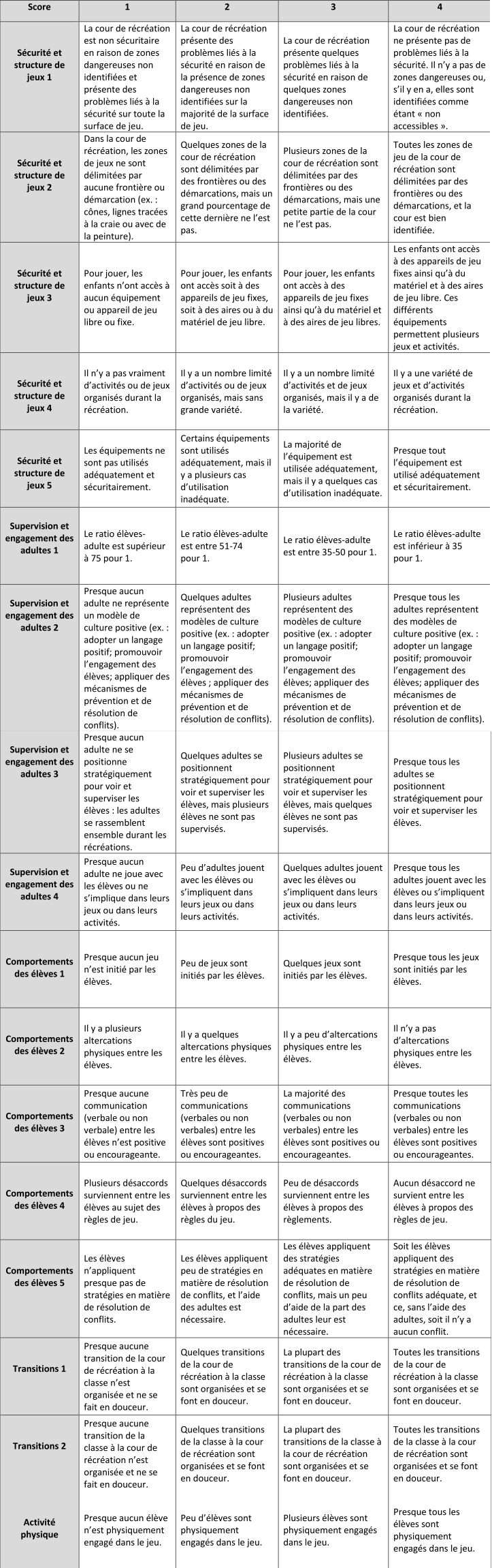 Leurs travaux ont mené à la création d’un outil scientifiquement fiable et valide qui permet au personnel scolaire d’analyser et d’améliorer l’environnement de récréation.