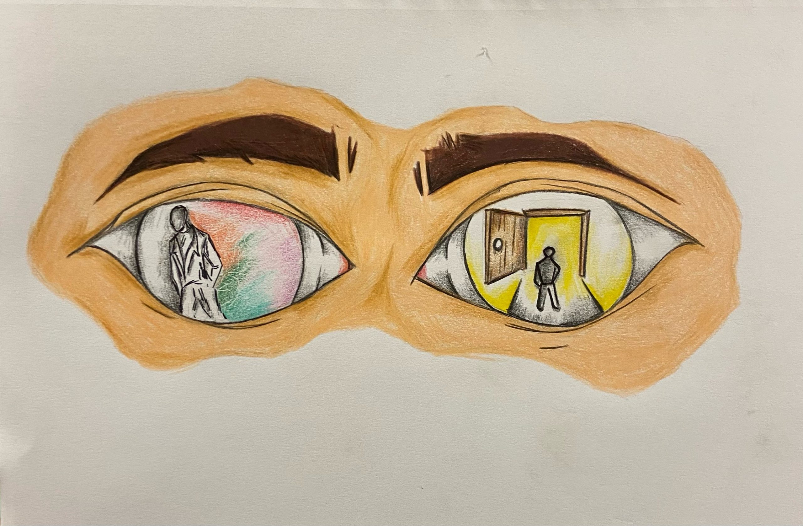 Hubert a aussi réalisé un dessin afin d’expliquer que, pour lui, « la résidence artistique », c’est « comme l’immersion d’un “moi” ouvert, réceptif et honoré dans un monde inconnu et empreint d’une richesse unique ».
