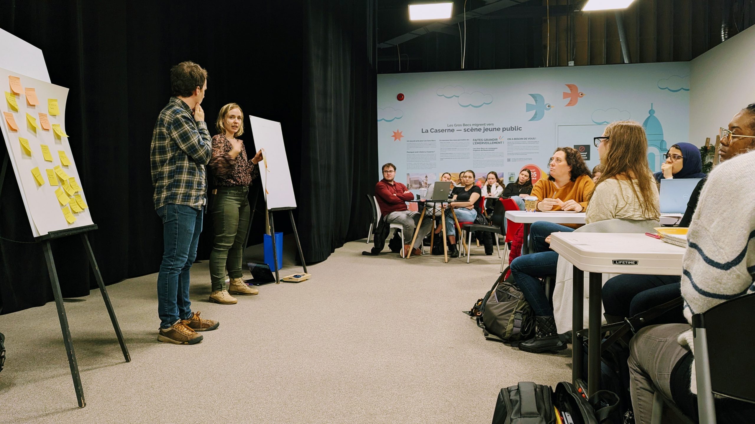 Financée par la bibliothèque Jean-Charles-Bonenfant, la résidence s’est déroulée dans le cadre du cours de didactique sur la lecture et l’écriture de textes littéraires au secondaire. À travers différents ateliers, dont une activité aux Gros Becs et un travail de table avec des artistes, les étudiants et étudiantes ont été conduits à dépasser la posture de spectateurs et de spectatrices par l’appréciation d’œuvres culturelles, la réflexion et la création. Les ateliers ont ainsi tracé un parcours (trans)formateur.